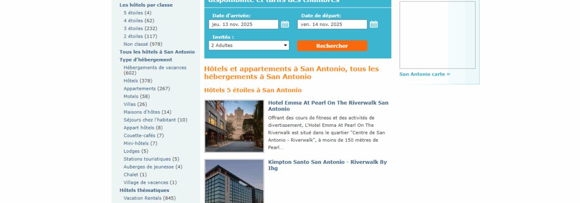 Réservation en ligne d'hôtels à San Antonio, ÉtatsUnis. Bonne disponibilité et tarifs avantageux. Pas cher et sécurisé, payez à l'hôtel, sans frais de réservation.